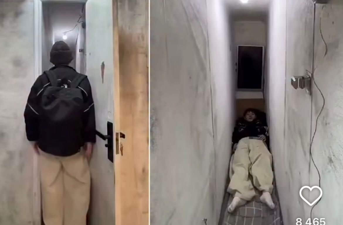 Әлеуметтік желілерде жарияланған видеода ені бар-жоғы 40 сантиметр болатын бөлмелер көрсетілген. Мұндай орындар тәулігіне шамамен 1 доллар тұрады.