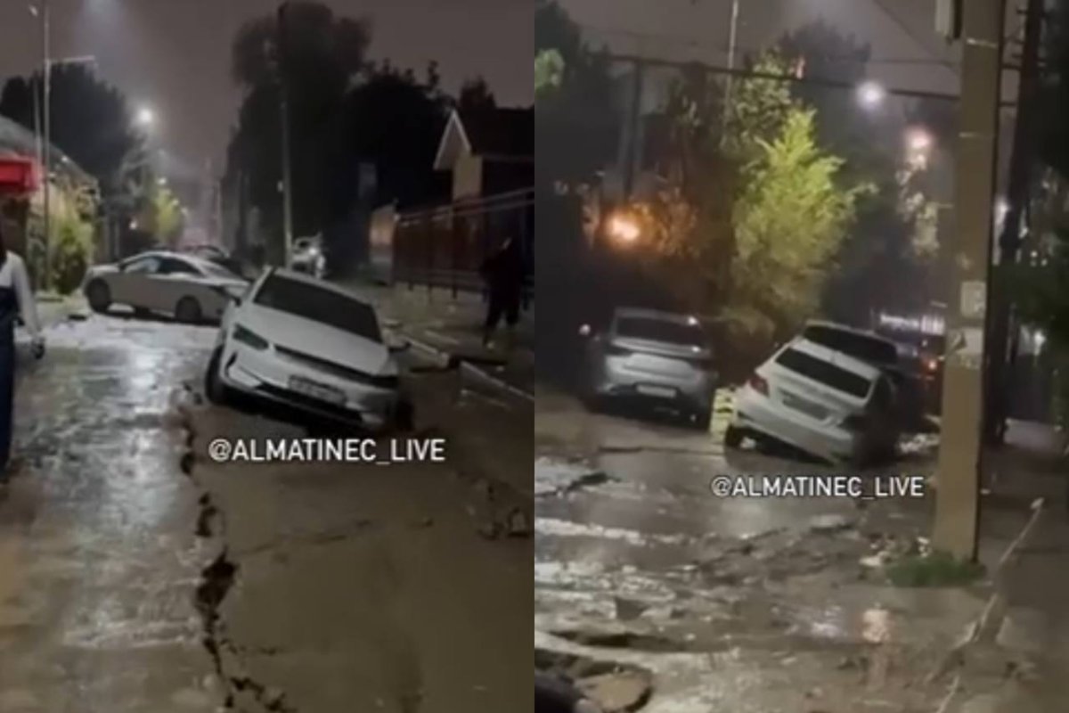Алматыда жол опырылып, 20-дан астам көлік жер астына түсіп кетті