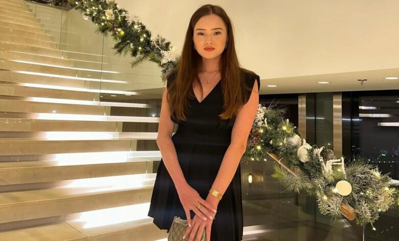 «Француздық бренд көйлегі — 161 мың теңге, етігі Gucci — 733 мың теңге, сөмкесі — 474 мың, сырғасы — 2 млн 99 мың, мойынға тағатын әшекейі — 5 млн 517 мың, сағаты Cartie — 15 млн 419 мың теңге, сақинасы — 1 млн 38 мың теңге. Барлығы -25 млн 434 мың теңге, — деді блогер Instagram парақшасында.