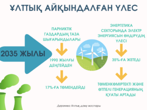 ҚР Экология және табиғи ресурстар министрлігінің дерегіне сенсек, жаңа ҰДАҮ 3.0 аясында 2035 жылға қарай парниктік газдардың таза шығарындыларын 1990 жылғы деңгейден 17%-ға төмендету (шартсыз) және халықаралық қолдау болған жағдайда 25%-ға дейін төмендету көзделген.