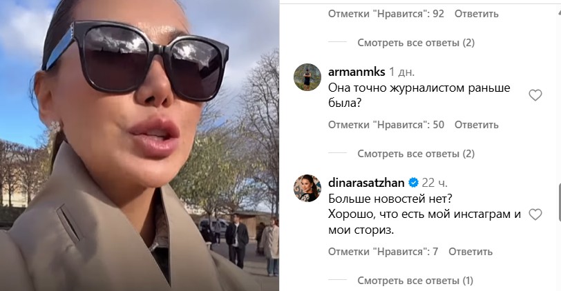 «Басқа жаңалық жоқ па? Менің Instagram-ым мен storis-ім болғаны қандай жақсы», — деді ол.