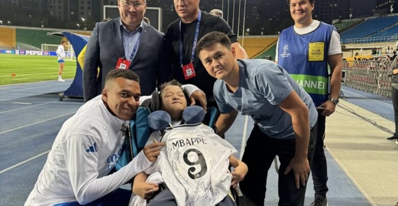 Команданың бас бапкері Хаби Алонсо бастаған футболшылар жас жанкүйермен суретке түсіп, қолтаңбаларын берді. Сонымен қатар Санжарға Килиан Мбаппенің футболкасы сыйға тартылды.